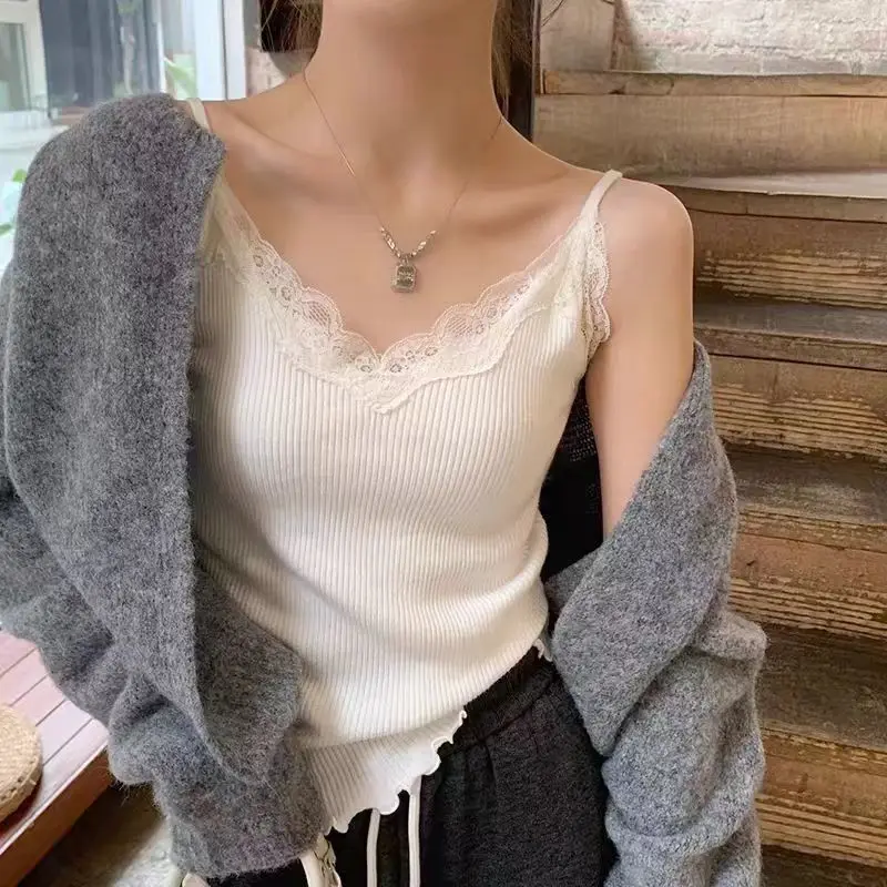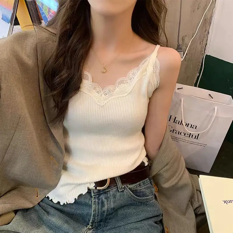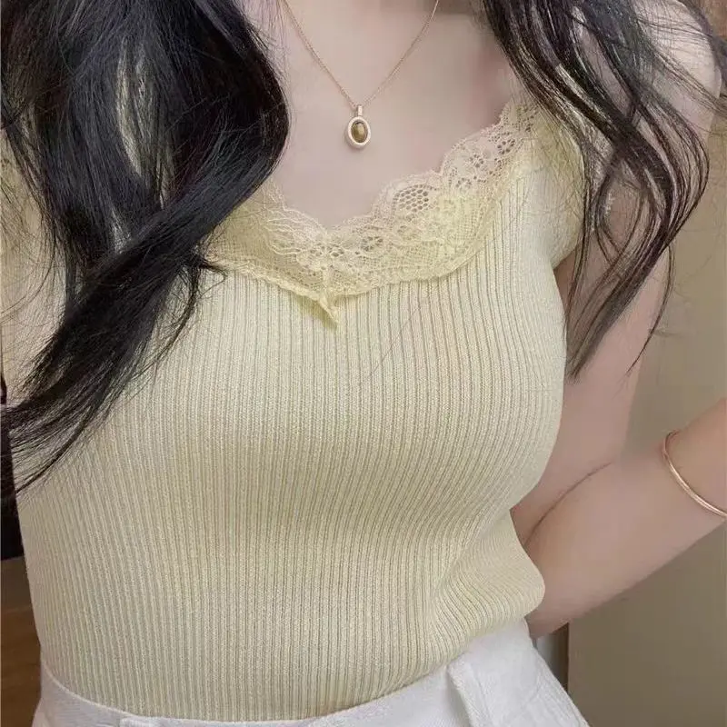 2025 Lace Tank Top Women Cropped Cute Camis Sexy White Tank Tops Female Korean Sleeveless Black Vest Summer Y2k Clothes