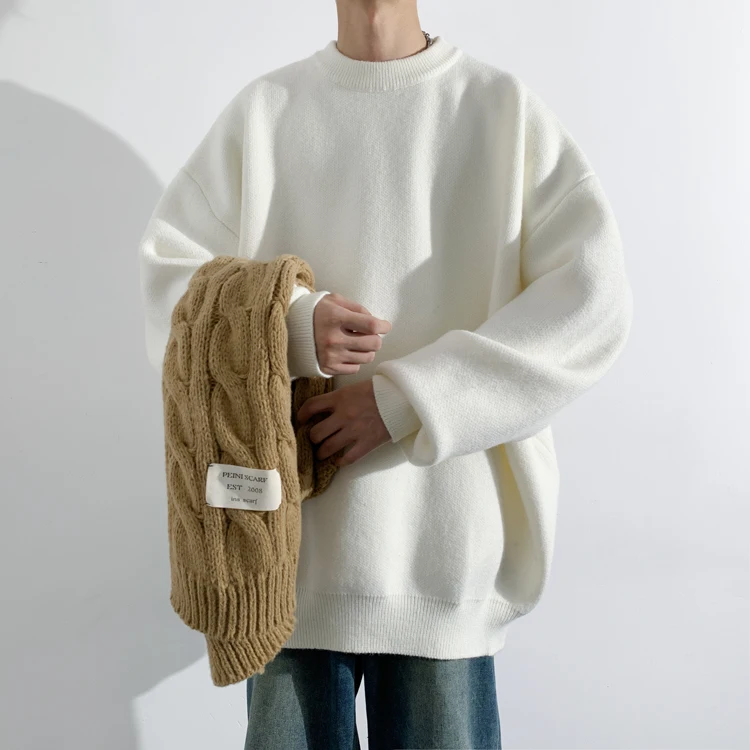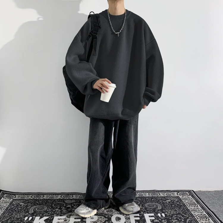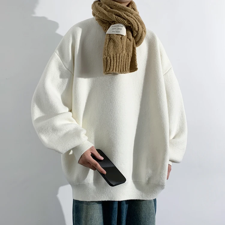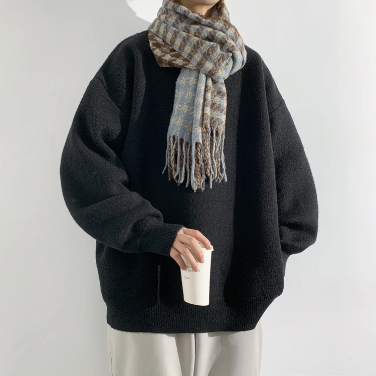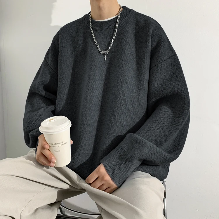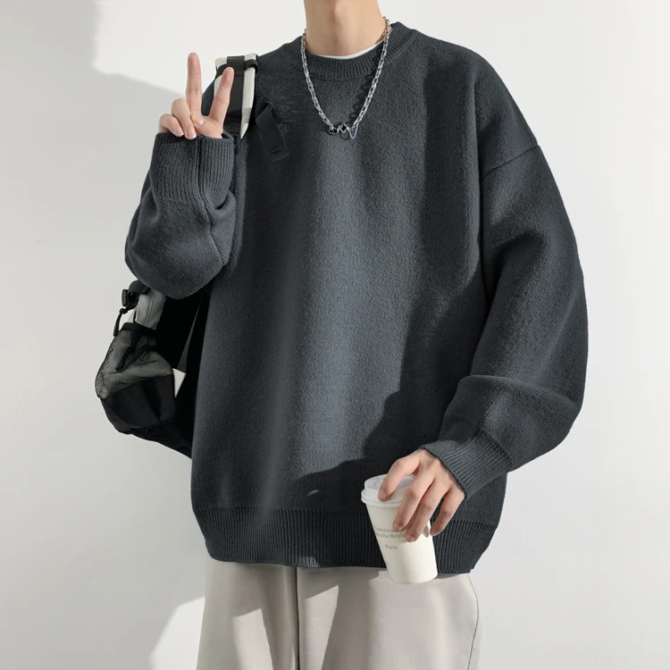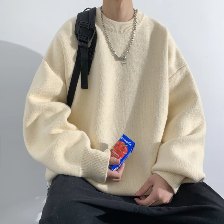 Korean Fashion Sweaters Men Autumn Solid Color Wool Sweaters Slim Fit Men Streetwear Mens Clothes Knitted Sweater Men Pullovers