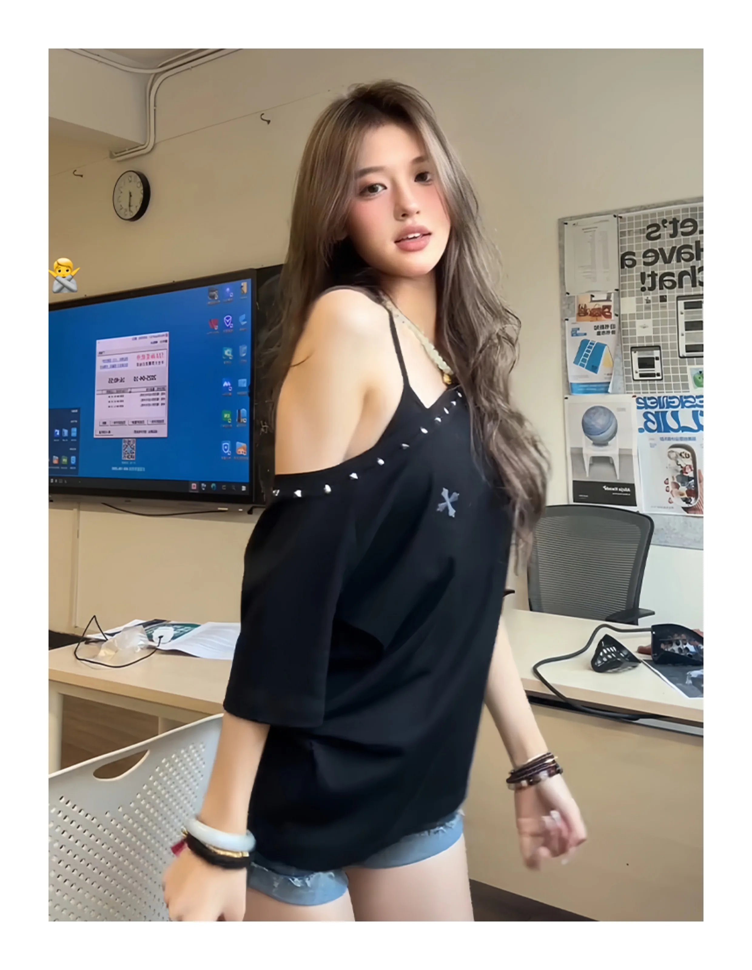 Tawaaiw American Retro T Shirt Women Clothes Short Sleeve Korean Fashion Off Shoulder 2000s Clothes Y2k Tees Female Clothing