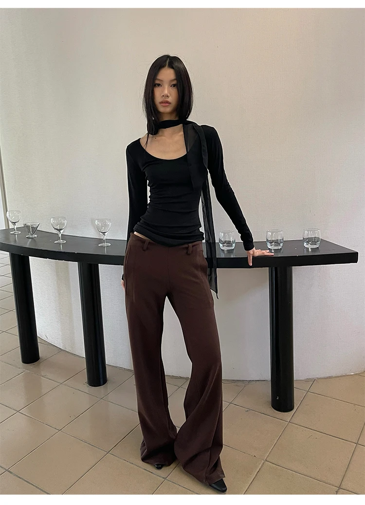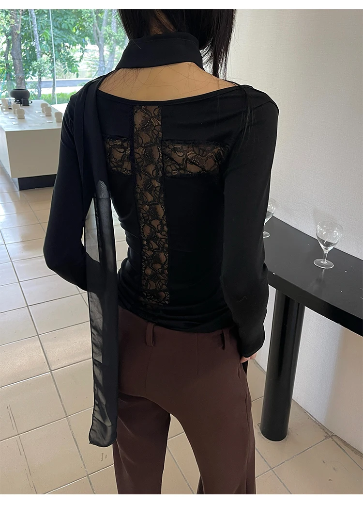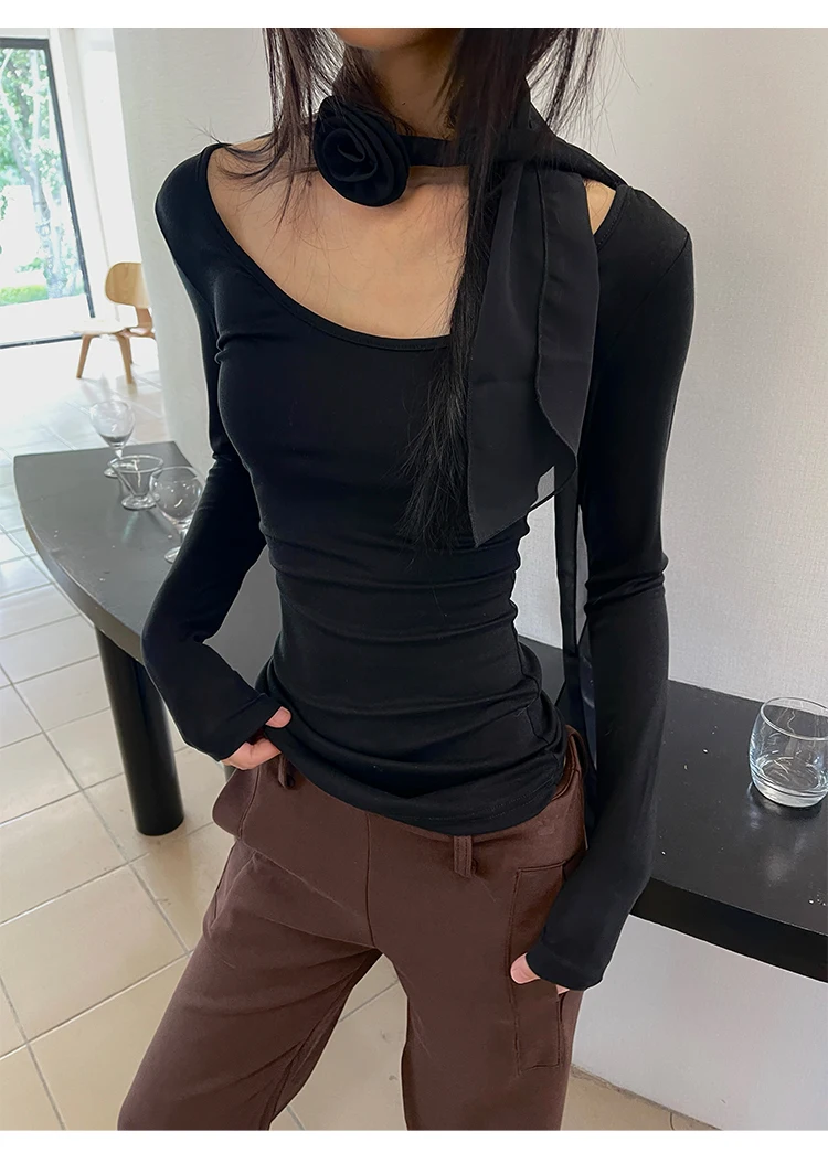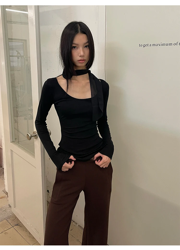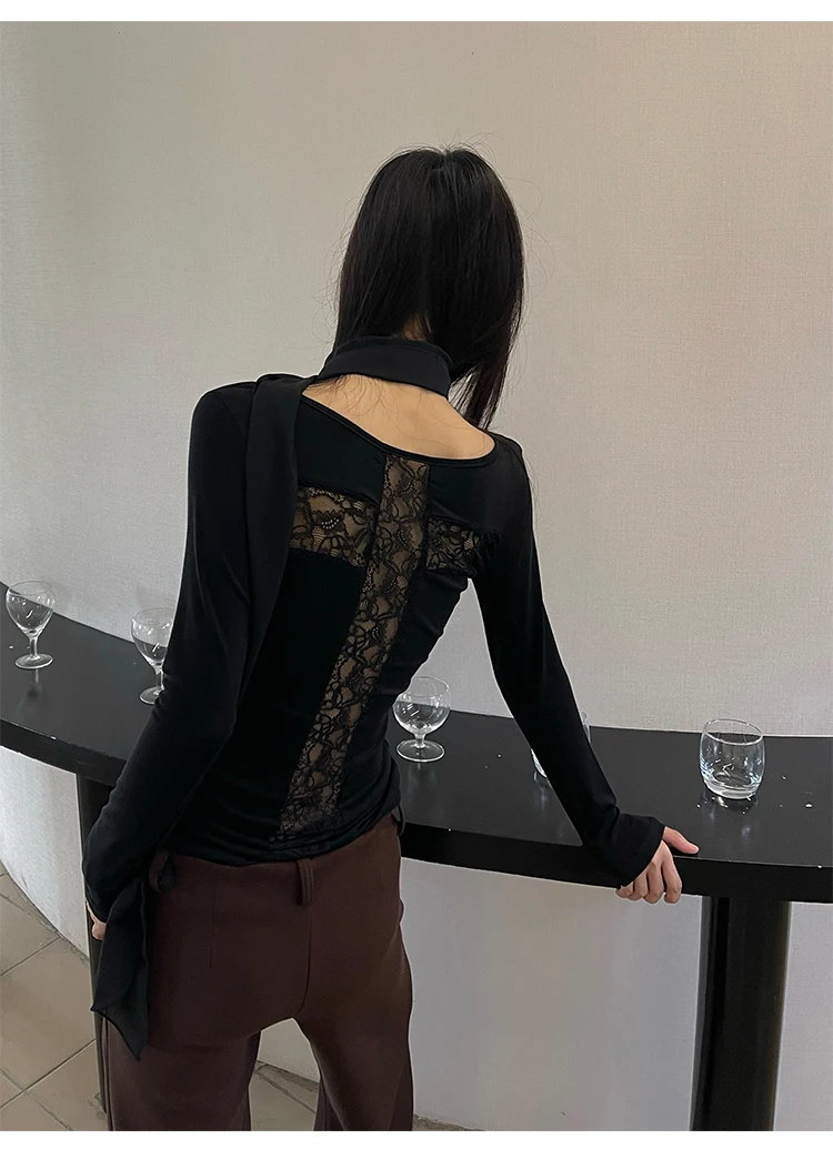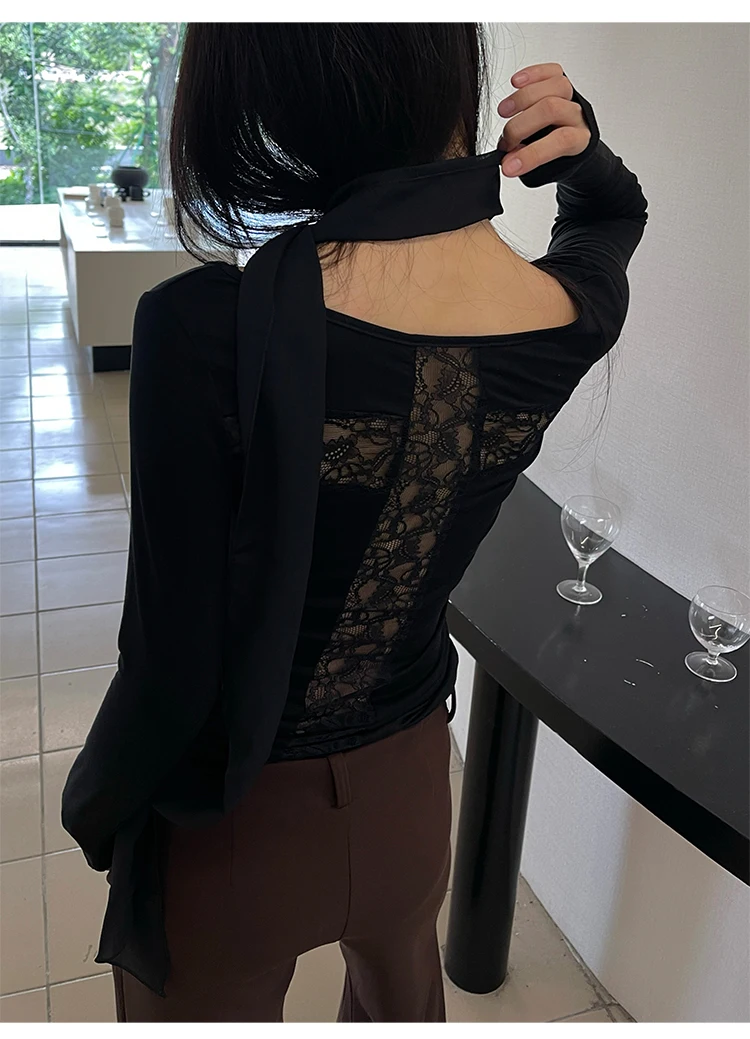 Yedinas Back Cross Hollow Out T-shirt Woman Clothes Long Sleeve Korean Fashion Autumn Tops Slim Tees Female Clothing Y2k T Shirt